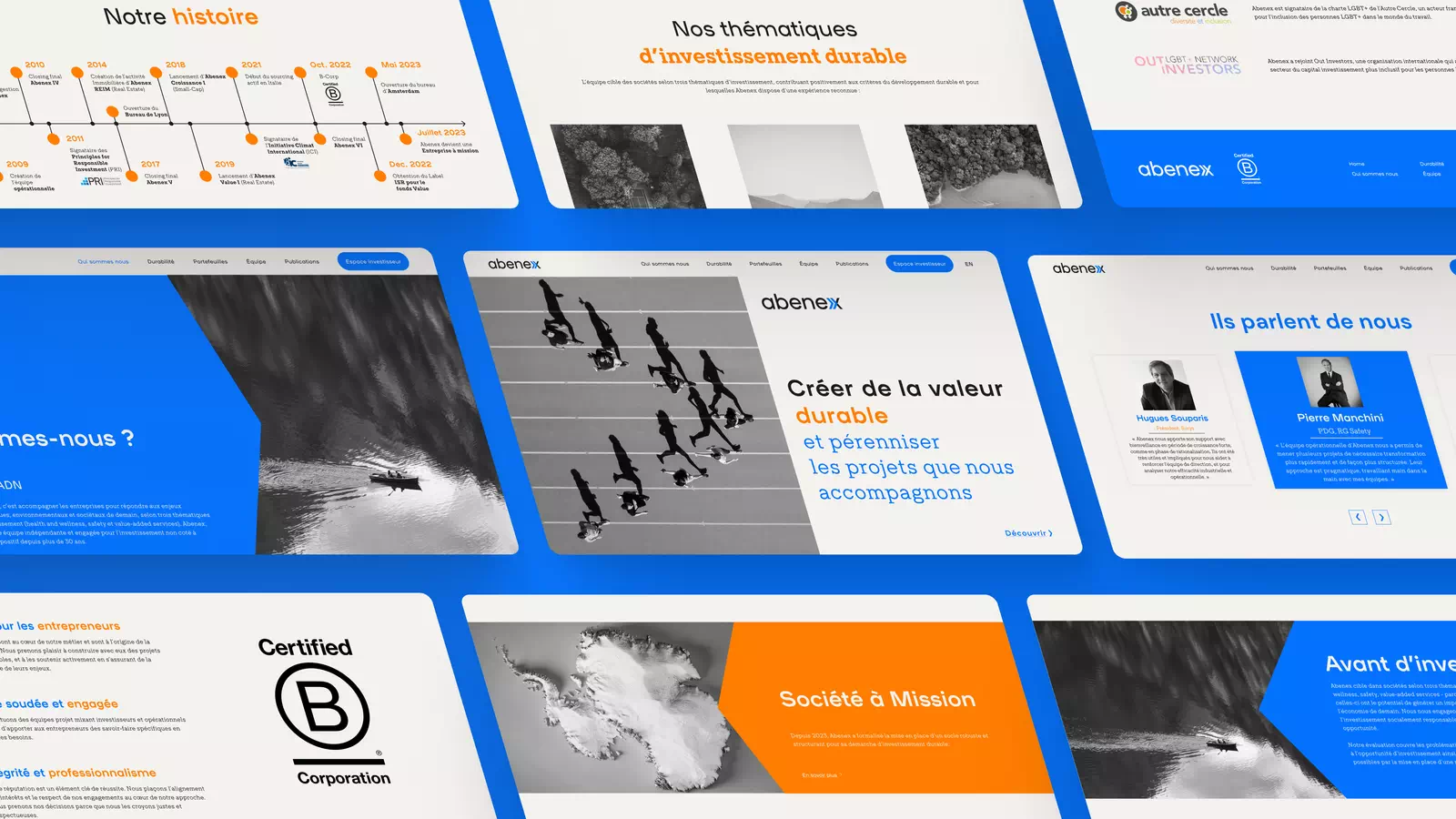 Studio Nanou a réalisé la refonte complète du site web d’Abenex, en mettant en avant une hiérarchie des informations optimisée, des couleurs impactantes et une navigation simplifiée.